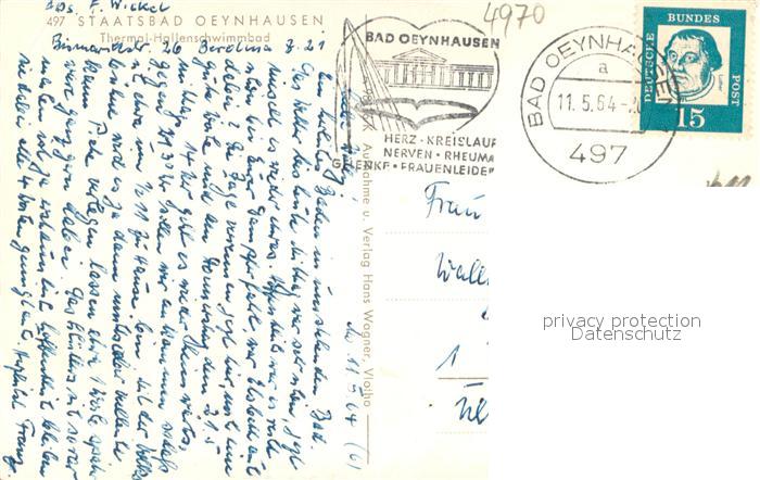 73694023 alte Postkarte Bad Oeynhausen Thermal Hallenbad postalisch gelaufen Erhaltung siehe scans [WerneD78] KatCode: 11110005770004