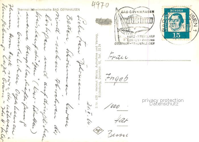 73695068 alte Postkarte Bad Oeynhausen Thermal Schwimmhalle postalisch gelaufen Erhaltung siehe scans [WerneD78] KatCode: 11110005770004