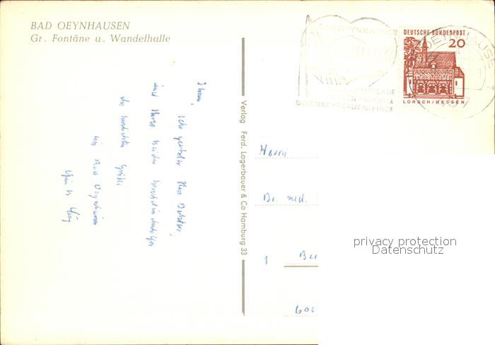 72530125 alte Postkarte Bad Oeynhausen Wandelhalle Fontaene postalisch gelaufen Erhaltung siehe scans KatCode: 11110005770004