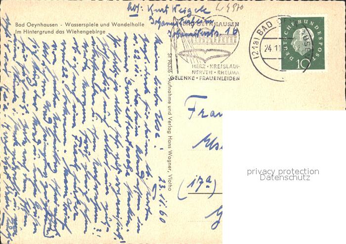 72201691 alte Postkarte Bad Oeynhausen Wasserspiele und Wandelhalle postalisch gelaufen Erhaltung siehe scans KatCode: 11110005770004
