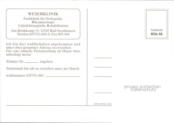 71972893 Bad Oeynhausen Weserklinik postalisch nicht gelaufen Erhaltung siehe scans KatCode: 11110005770004