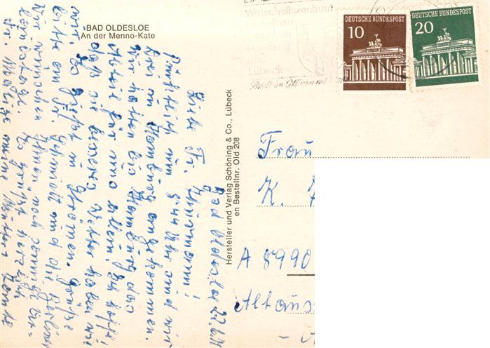 73864351 alte Postkarte Bad Oldesloe An der Menno-Kate postalisch gelaufen Erhaltung siehe scans [FriedD77] KatCode: 11110001062004