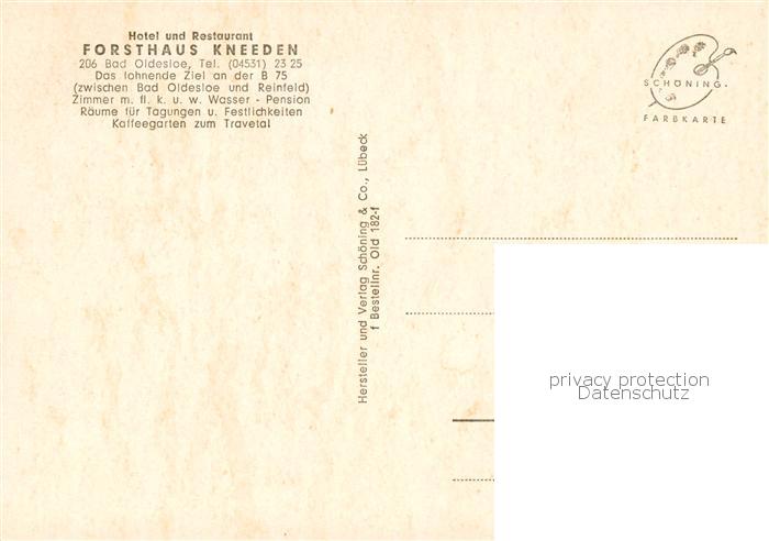 73844829 Bad Oldesloe Hotel Restaurant Forsthaus Kneeden postalisch nicht gelaufen Erhaltung siehe scans [FriedD77] KatCode: 11110001062004