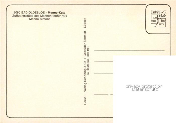 73119763 Bad Oldesloe Menno Kate Zufluchtsstaette des Mennonitenfuehrers postalisch nicht gelaufen Erhaltung siehe scans [LiesaD40] KatCode: 11110001062004