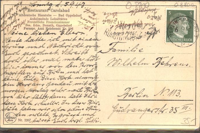 11371818 Bad Oppelsdorf Opolno Zdroj Restaurant Carolabad Bierstube KatCode 11410