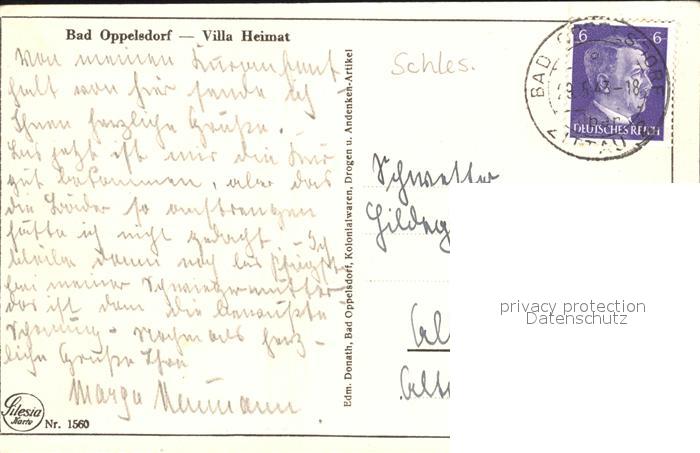 12155943 old postcard Bad Oppelsdorf Opolno Zdroj Villa Heimat postalisch gelaufen Erhaltung siehe scans KatCode: 11410