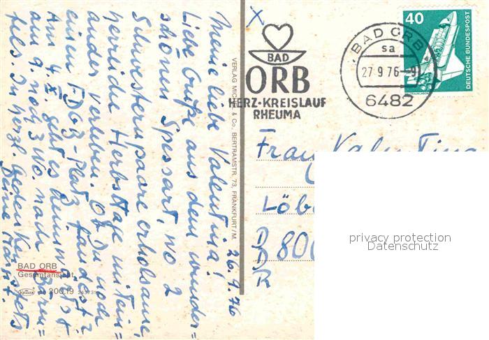 72631503 alte Postkarte Bad Orb postalisch gelaufen Erhaltung siehe scans [LiesaD40] KatCode: 11110006435001