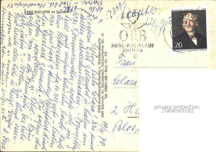 72326207 alte Postkarte Bad Orb postalisch gelaufen Erhaltung siehe scans KatCode: 11110006435001