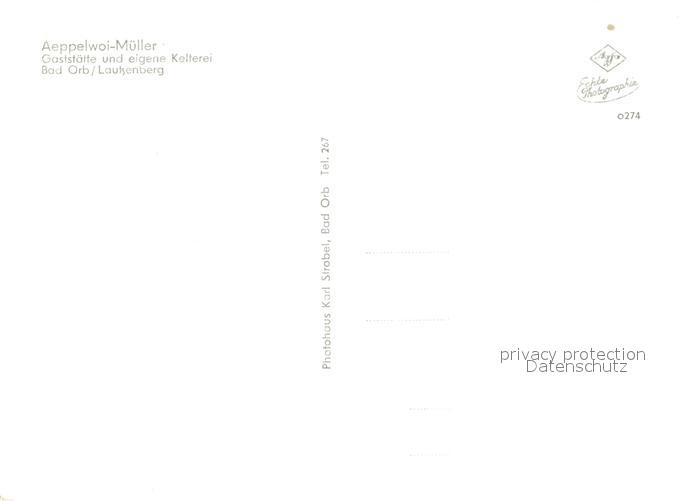 73087597 Bad Orb Aeppelwoi Mueller Gaststaette Kelterei postalisch nicht gelaufen Erhaltung siehe scans [KathaD81] KatCode: 11110006435001