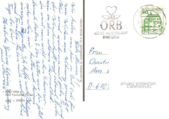 73203916 alte Postkarte Bad Orb Alte Fachwerkhaeuser postalisch gelaufen Erhaltung siehe scans [PaolaD17] KatCode: 11110006435001