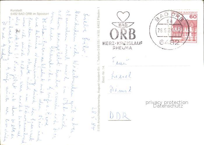 72223313 alte Postkarte Bad Orb Altstadt Kurkonzert Salinenplatz St. Martinskirche Leopold-Koch-Bad postalisch gelaufen Erhaltung siehe scans KatCode: 11110006435001