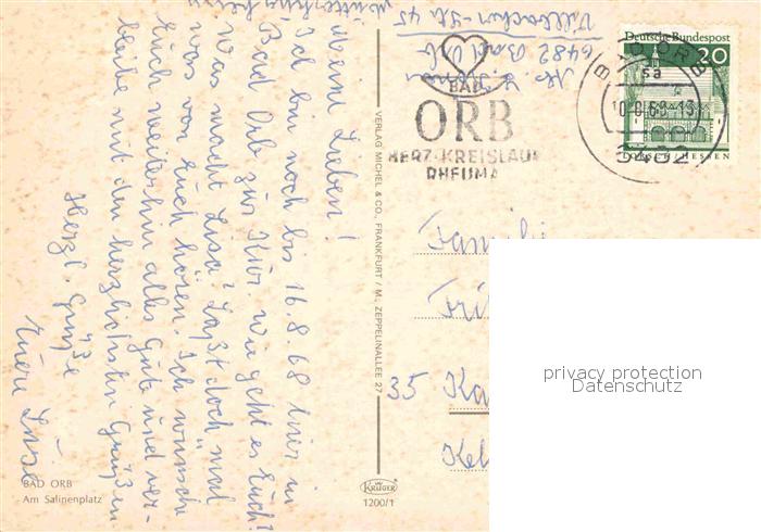 72679750 alte Postkarte Bad Orb Am Salinenplatz postalisch gelaufen Erhaltung siehe scans [FriedD77] KatCode: 11110006435001
