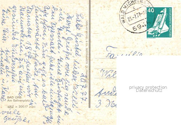72825286 alte Postkarte Bad Orb Am Salinenplatz postalisch gelaufen Erhaltung siehe scans [AndreD76] KatCode: 11110006435001