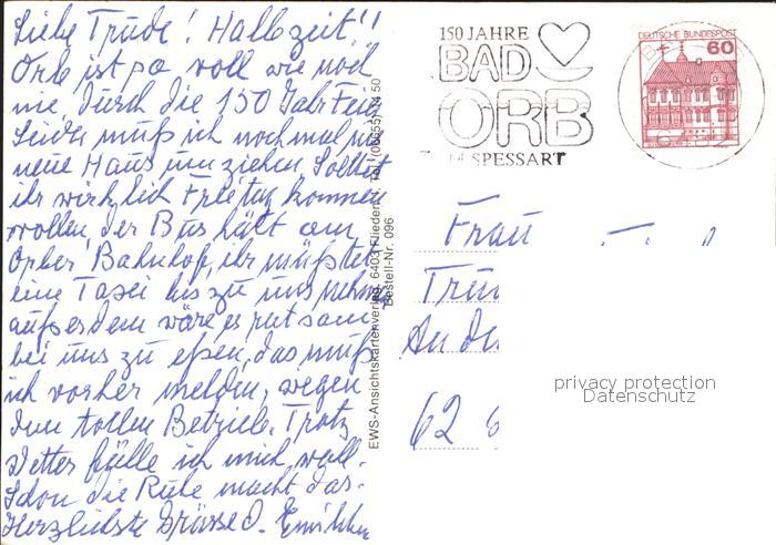 72113718 alte Postkarte Bad Orb Aschaffenburg Lohr Main Autobahn Rasthaus im Spessart Frammersbach Wasserschloss Mespelbrunn Heigenbruecken postalisch gelaufen Erhaltung siehe scans KatCode: 11110006435001