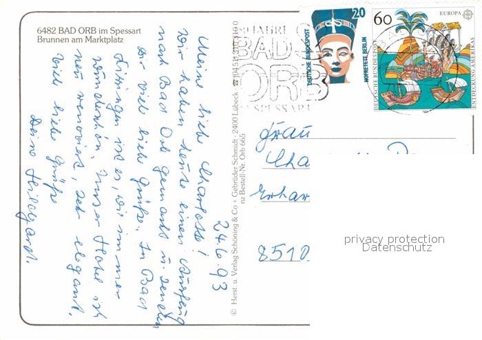 72832070 alte Postkarte Bad Orb Brunnen am Marktplatz postalisch gelaufen Erhaltung siehe scans [LiesaD40] KatCode: 11110006435001