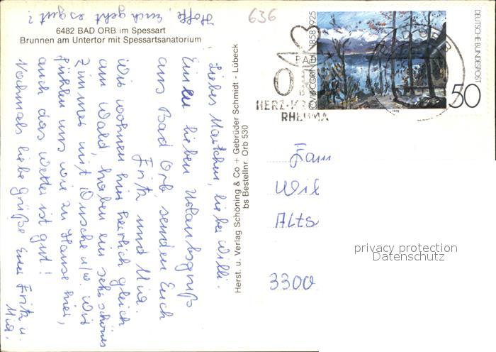 72603652 alte Postkarte Bad Orb Brunnen am Untertor mit Spessartsanatorium postalisch gelaufen Erhaltung siehe scans [FriedD77] KatCode: 11110006435001