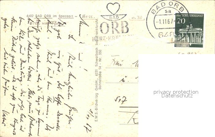 72312718 alte Postkarte Bad Orb Brunnen Konzerthalle postalisch gelaufen Erhaltung siehe scans KatCode: 11110006435001