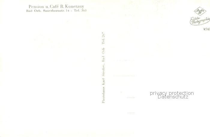 73759716 Bad Orb Cafe-Rest. Konetzny Innen- u. Aussenansicht postalisch nicht gelaufen Erhaltung siehe scans [LiesaD40] KatCode: 11110006435001