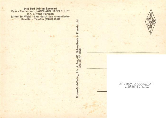 73045888 Bad Orb Cafe Restaurant Jagdhaus Haselruhe postalisch nicht gelaufen Erhaltung siehe scans [WerneD78] KatCode: 11110006435001