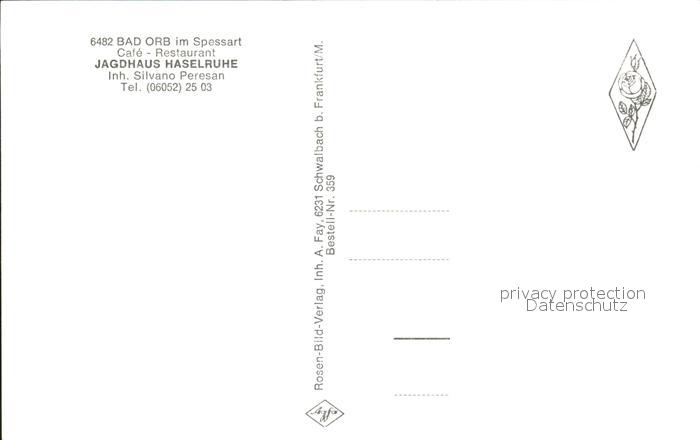 72120747 Bad Orb Cafe Restaurant Jagdhaus Haselruhe postalisch nicht gelaufen Erhaltung siehe scans KatCode: 11110006435001