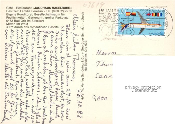 73570125 alte Postkarte Bad Orb Cafe Restaurant Jagdhaus Haselruhe Festtafel Gartenterrasse Teich postalisch gelaufen Erhaltung siehe scans [FriedD77] KatCode: 11110006435001