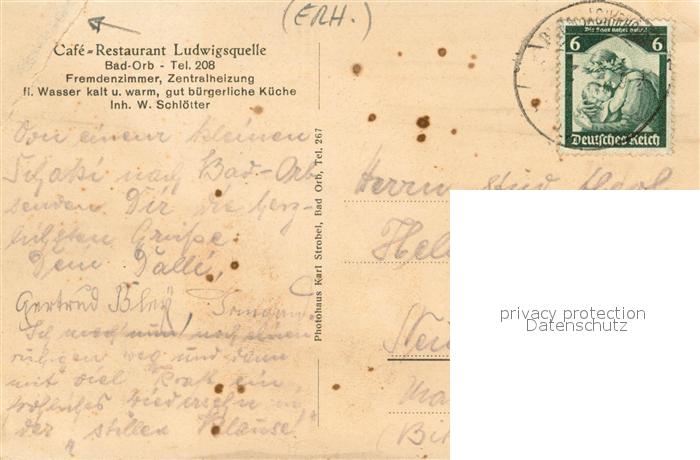 33708426 alte Postkarte Bad Orb Cafe Restaurant Ludwigsquelle Gastraum postalisch gelaufen Erhaltung siehe scans [WerneD78] KatCode: 11110006435001