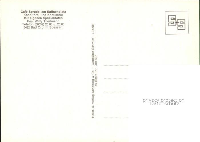 72578247 Bad Orb Cafe Sprudel Salinenplatz postalisch nicht gelaufen Erhaltung siehe scans [AndreD76] KatCode: 11110006435001