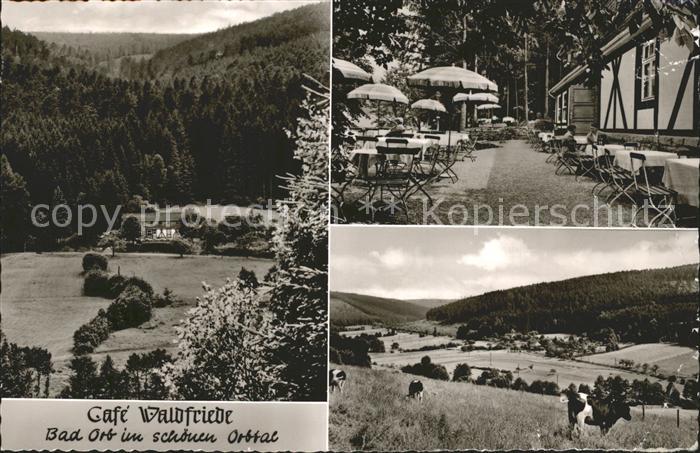 72120750 alte Postkarte Bad Orb Cafe Waldfriede Gartenterrasse Panorama postalisch gelaufen Erhaltung siehe scans KatCode: 11110006435001