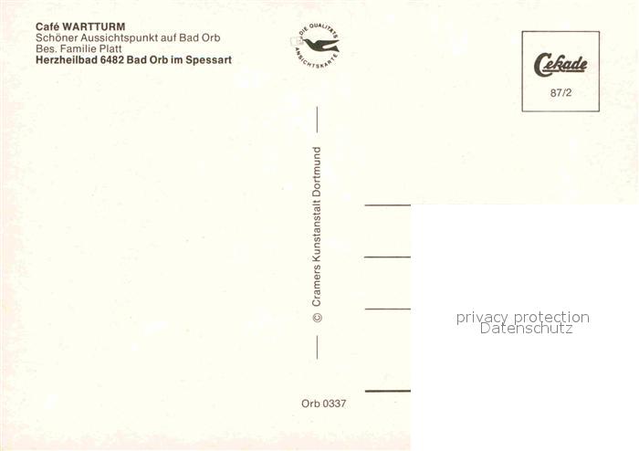 72672978 Bad Orb Cafe Wartturm postalisch nicht gelaufen Erhaltung siehe scans [AndreD76] KatCode: 11110006435001
