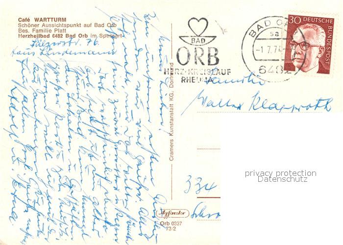 73090287 alte Postkarte Bad Orb Cafe Wartturm postalisch gelaufen Erhaltung siehe scans [NatalD47] KatCode: 11110006435001