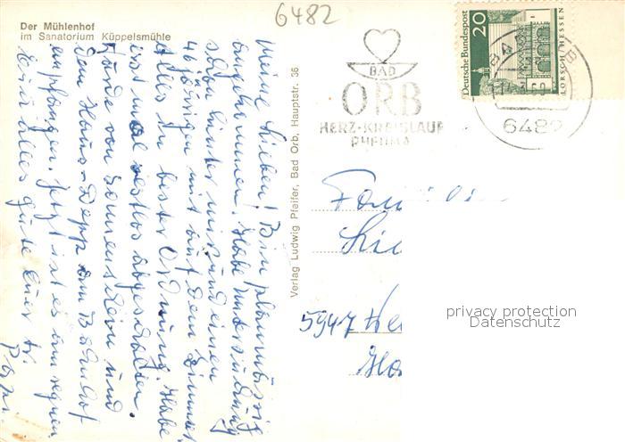 73707117 alte Postkarte Bad Orb Der Muehlenhof im Sanatorium Kueppelsmuehle postalisch gelaufen Erhaltung siehe scans [LiesaD40] KatCode: 11110006435001