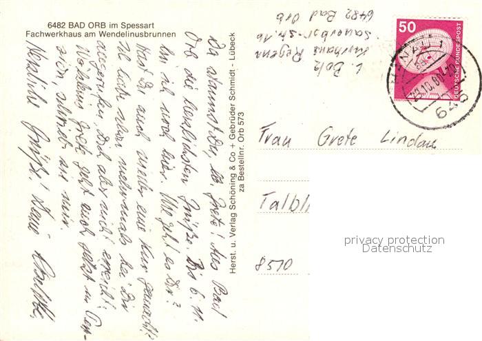 73024015 alte Postkarte Bad Orb Fachwerkhaus Wendelinusbrunnen postalisch gelaufen Erhaltung siehe scans [KathaD81] KatCode: 11110006435001