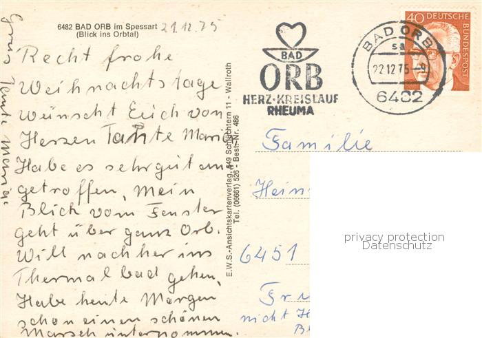 73765945 alte Postkarte Bad Orb Fliegeraufnahme postalisch gelaufen Erhaltung siehe scans [FriedD77] KatCode: 11110006435001