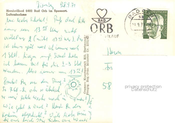 73726432 alte Postkarte Bad Orb Fliegeraufnahme postalisch gelaufen Erhaltung siehe scans [WerneD78] KatCode: 11110006435001