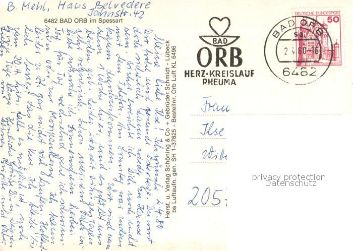 73618217 alte Postkarte Bad Orb Fliegeraufnahme postalisch gelaufen Erhaltung siehe scans [FriedD77] KatCode: 11110006435001