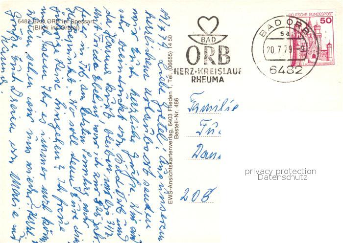 73542503 alte Postkarte Bad Orb Fliegeraufnahme postalisch gelaufen Erhaltung siehe scans [KathaD81] KatCode: 11110006435001
