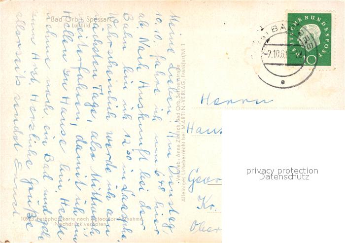 73116129 alte Postkarte Bad Orb Fliegeraufnahme postalisch gelaufen Erhaltung siehe scans [NatalD47] KatCode: 11110006435001