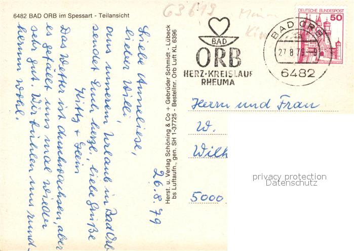 73100035 alte Postkarte Bad Orb Fliegeraufnahme postalisch gelaufen Erhaltung siehe scans [WerneD78] KatCode: 11110006435001