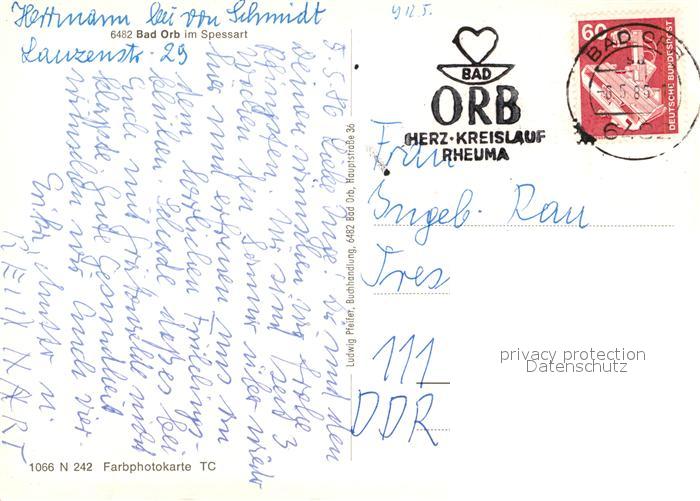 73011136 alte Postkarte Bad Orb Fliegeraufnahme postalisch gelaufen Erhaltung siehe scans [WerneD78] KatCode: 11110006435001