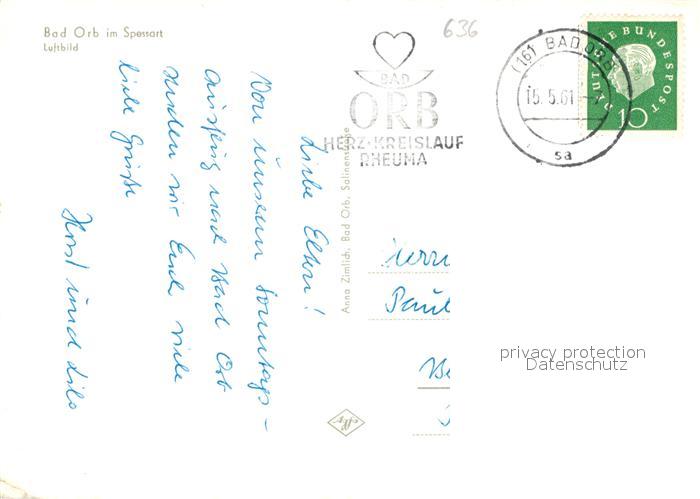 72952889 alte Postkarte Bad Orb Fliegeraufnahme postalisch gelaufen Erhaltung siehe scans [FriedD77] KatCode: 11110006435001
