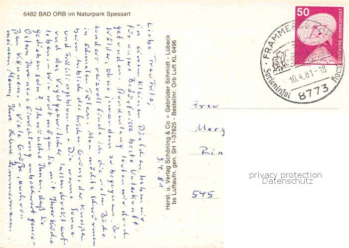 72903527 alte Postkarte Bad Orb Fliegeraufnahme postalisch gelaufen Erhaltung siehe scans [FriedD77] KatCode: 11110006435001