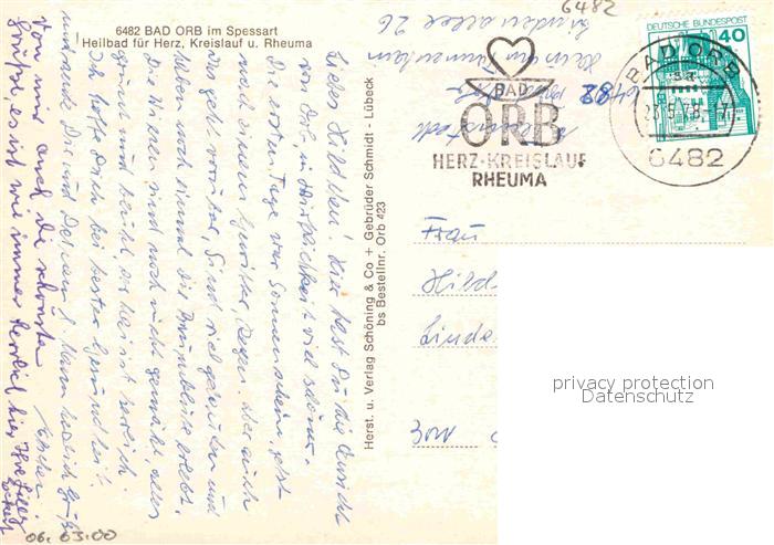 72888557 alte Postkarte Bad Orb Fliegeraufnahme postalisch gelaufen Erhaltung siehe scans [WerneD78] KatCode: 11110006435001