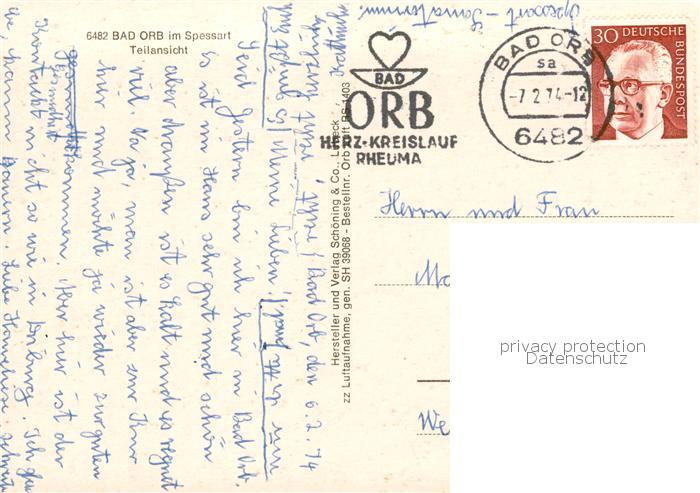 73841011 alte Postkarte Bad Orb Fliegeraufnahme postalisch gelaufen Erhaltung siehe scans [WerneD78] KatCode: 11110006435001
