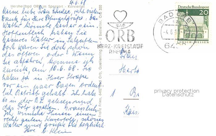 72665650 alte Postkarte Bad Orb Fliegeraufnahme postalisch gelaufen Erhaltung siehe scans [LiesaD40] KatCode: 11110006435001