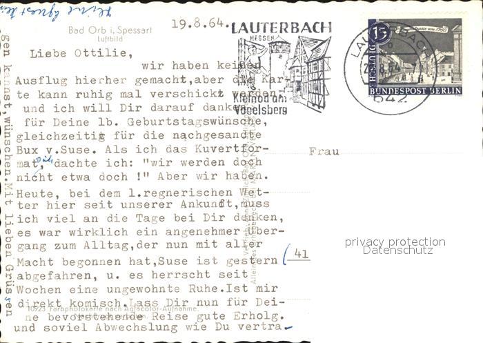 alte Postkarte Bad Orb Fliegeraufnahme postalisch gelaufen Erhaltung siehe scans