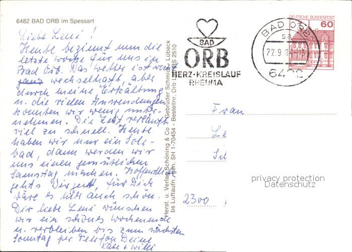 72316868 alte Postkarte Bad Orb Fliegeraufnahme postalisch gelaufen Erhaltung siehe scans KatCode: 11110006435001