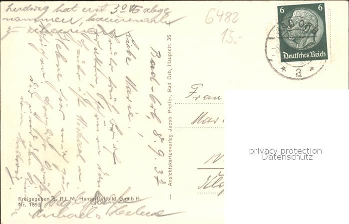 72120899 alte Postkarte Bad Orb Fliegeraufnahme postalisch gelaufen Erhaltung siehe scans KatCode: 11110006435001