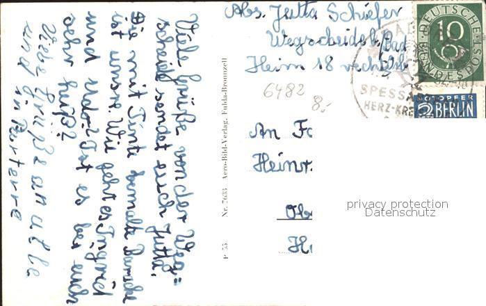 72130560 alte Postkarte Bad Orb Fliegeraufnahme Frankfurter Schullandheim Wegscheide postalisch gelaufen Erhaltung siehe scans KatCode: 11110006435001