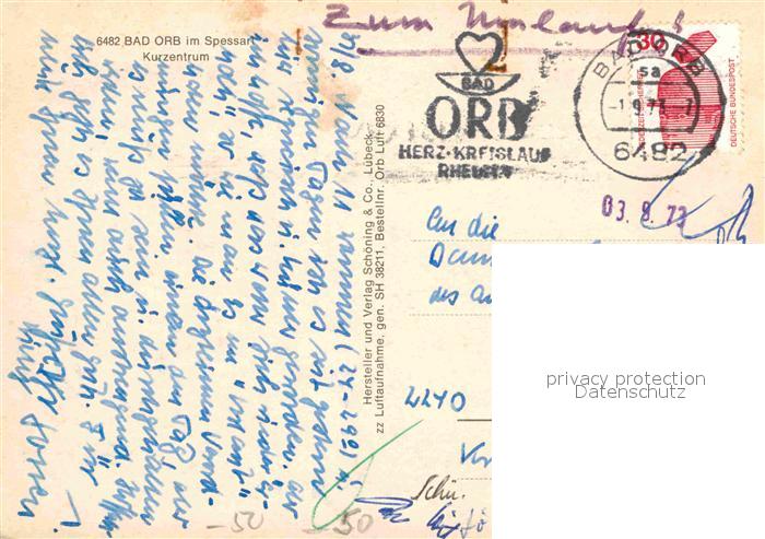 72900190 alte Postkarte Bad Orb Fliegeraufnahme Kurzentrum postalisch gelaufen Erhaltung siehe scans [LiesaD40] KatCode: 11110006435001