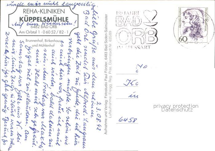 72575923 alte Postkarte Bad Orb Fliegeraufnahme Reha-Kliniken Kueppelsmuehle postalisch gelaufen Erhaltung siehe scans [LiesaD40] KatCode: 11110006435001